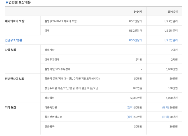 아래 보장 내용을 보면 항공기 결항/지연에 대해 50만원까지 지원이 됩니다. 이 부분이 필요하여 가입을 진행했습니다.