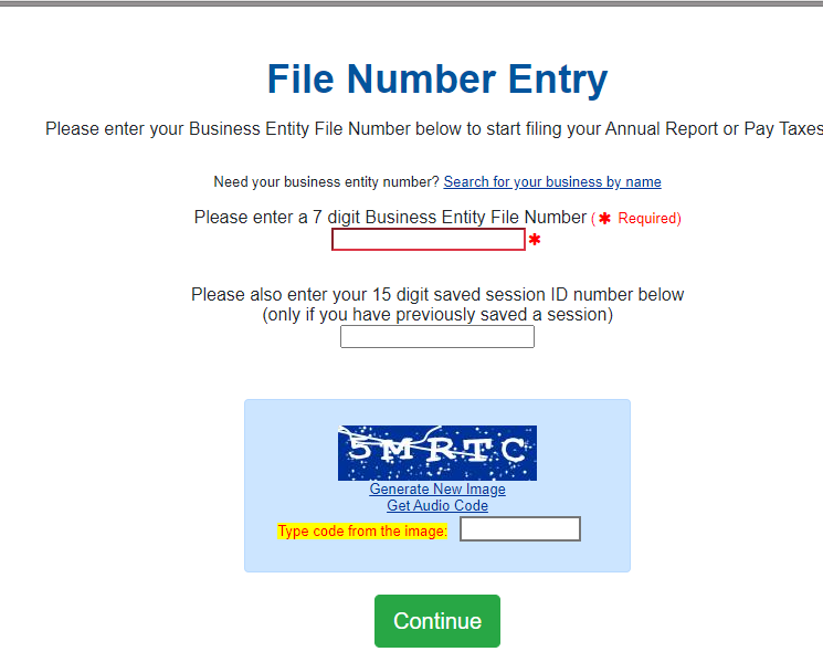 아래와 같이 법인 6자리 숫자를 적게 되어 있는데, 최초 법인 설립 당시 Filing 했던 서류를 보면 6가지 숫자가 나타납니다. 이를 입력하고 보안코드를 입력하면 납부 대상을 확인할 수 있습니다.