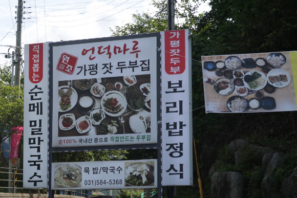 서울로 올라오는 길에 맛집을 찾다가 아침고요수목원 인근에 있는 유명한 맛집인 언덕마루 가평잣두부집에 방문하였습니다. 워낙 맛집으로 유명하여 주말에는 웨이팅이 필수라고 하는데 평일에 가니 대기가 있긴 했지만 20분 정도 기다리니 안으로 들어갈 수 있었습니다.