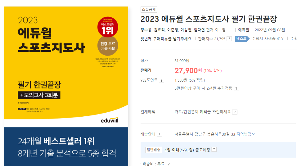 아래 에듀윌 스포츠지도사로 선택했습니다.