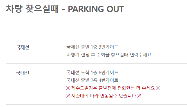 - 차량 찾을 때 국내선 출발2층 4번 게이트 (제주도에서 출발 전 전화 필요)