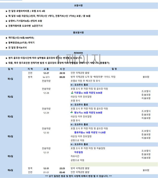 2. 방콕 골프 여행 일정