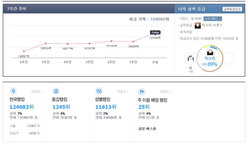 독수리 브론즈를 달성했다! 전국 랭킹으로는 상위 7%이다.