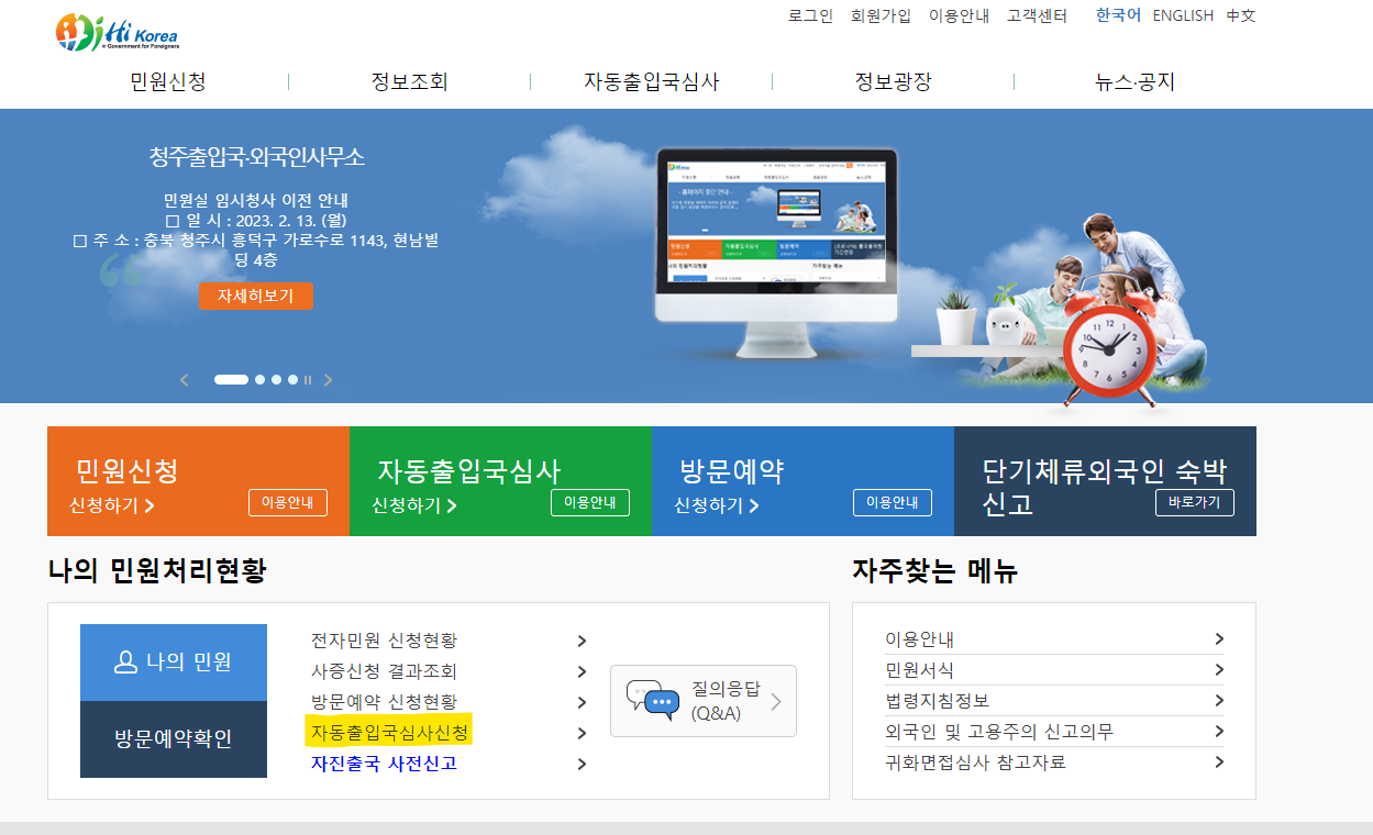 1. 하이코리아에서 자동출입국 심사 신청