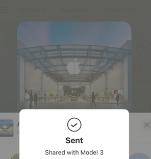 테슬라 어플을 누르면 아래와 같이 모델3로 주소지가 전송되었다고 나오며 테슬라 화면과 구글맵이 연동됩니다.