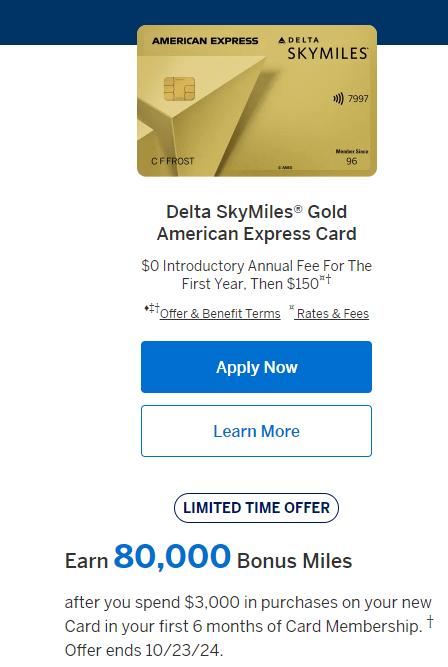 6개월 내 $2,000 사용 시 60,000 마일이 보너스로 제공되고 8~12주 내 Delta skymiles가 들어온다고 합니다.