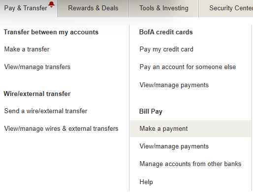 Pay & Transfer -→ Bill Pay → Make a Payment