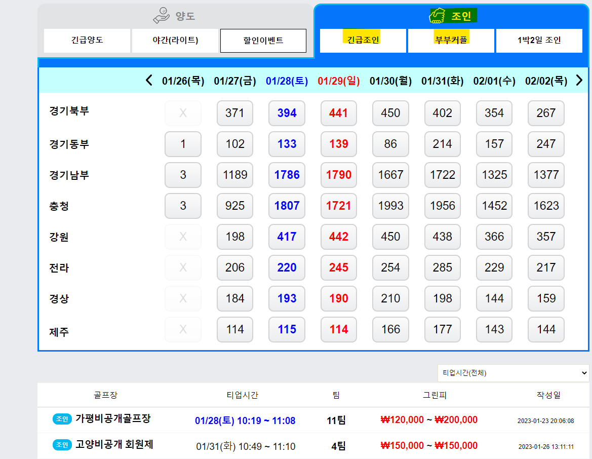 부킹매니저들이 전문적으로 올리는 것으로 개인이 아니라 응답율, 문제 발생 시 대응이 빠른 편입니다. 골팡 보다는 골프몬이 골프장 선택지가 많은 것 같습니다.