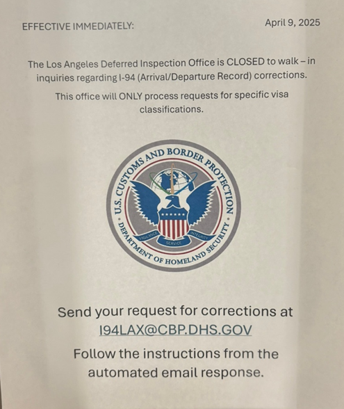 LA에서 I 94 Correction은 더이상 워크인 불가하니 꼭 이메일 접수 하시길 바랍니다!!