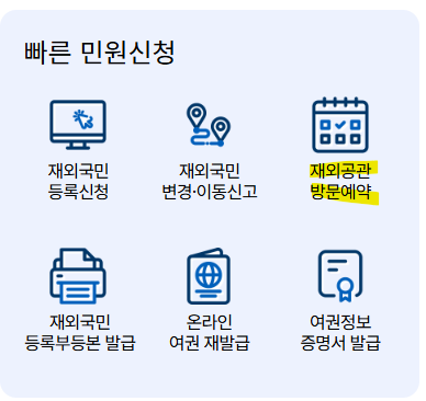 빠른 민원 신청의 재외공관 방문예약을 통해 진행하면 간단하게 처리 됩니다.