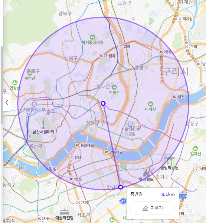 - 음식점, 시장 등은 답십리역 부근까지 가야 함