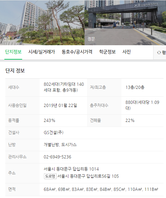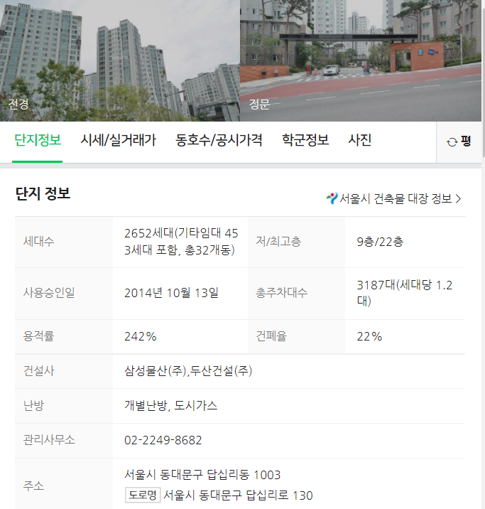 2652세대로 대단지로 답십리의 대장단지로 불리며 초등학교를 품고 있습니다.