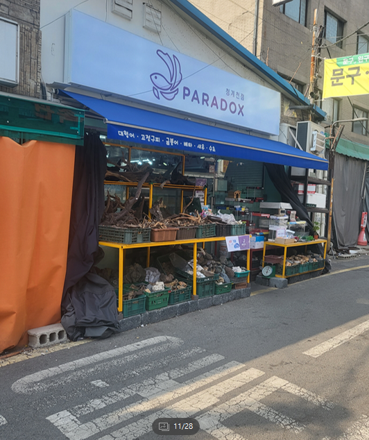 수족관거리는 깨끗하게 가게들이 나열되어 있기보다는 옛날 느낌이 물씬 풍기는 간판과 오랫동안 이곳에서 운영을 하신 것 같은 사장님들이 눈에 띕니다. 거리 느낌은 아래와 같습니다.