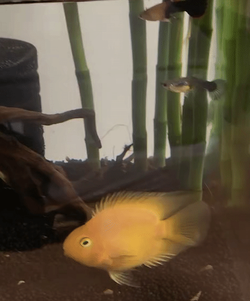 혈앵무의 귀여움을 이기지 못하고 봉달해왔습니다. 어항이 작아서 그런지 작은 친구를 데려왔다고 생각했는데 엄청 크더라구요. 혈앵무와 구피는 합사가 안된다고 합니다. (혈앵무가 구피를 잡아먹는다고 해요) 투입 후 구피들은 별도 분리막을 설치해 분리시켜 주었습니다. .