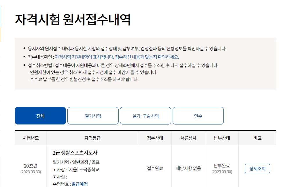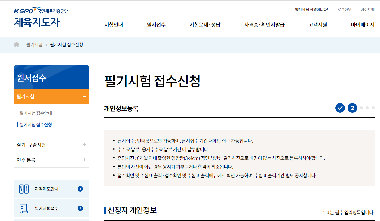 오늘 스포츠지도사 필기 접수가 시작되었습니다.